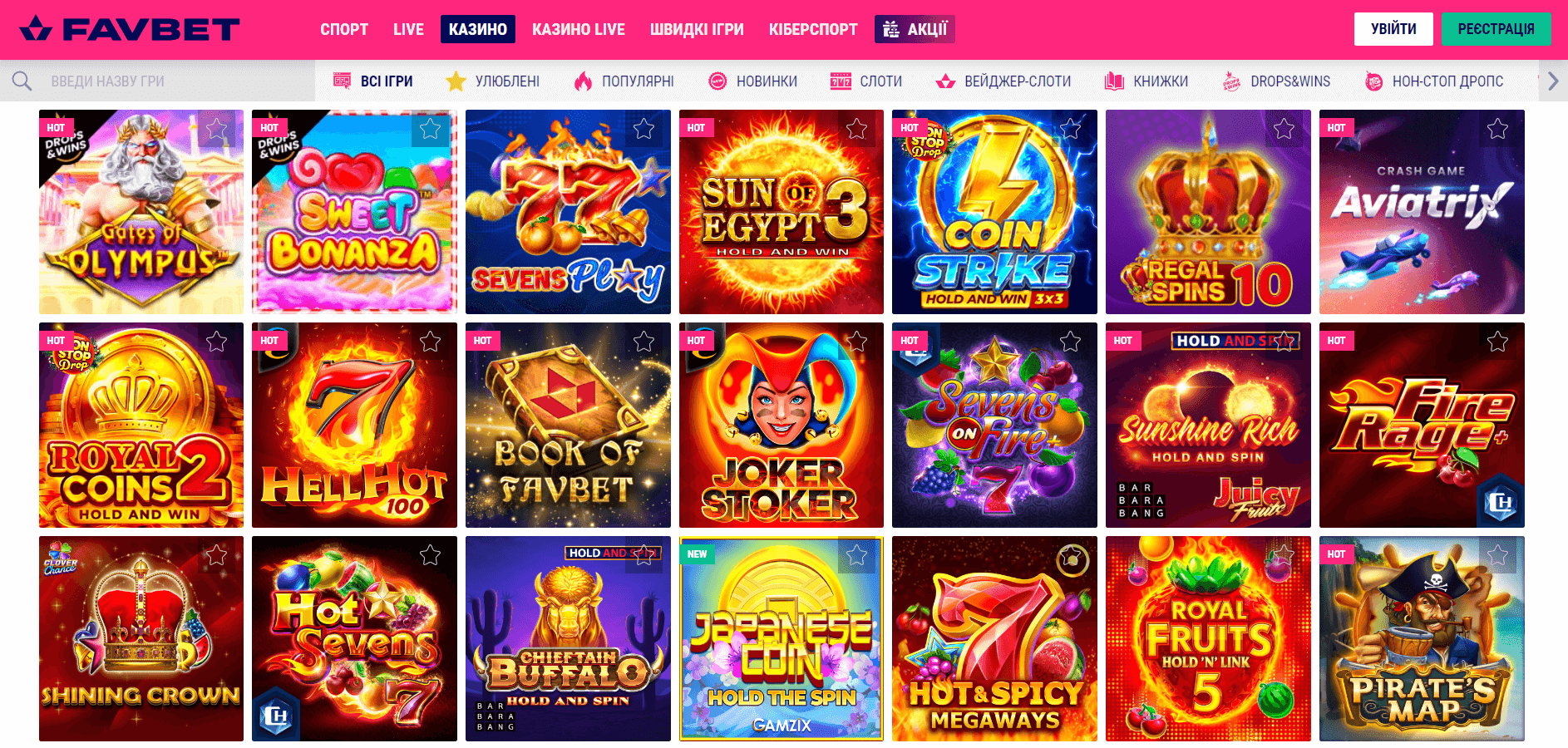 Пріоритетні Слоти на Favbet