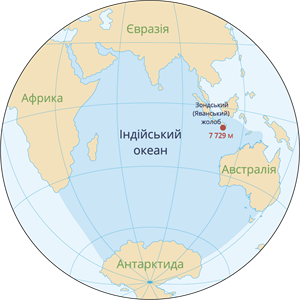 • Найбільша глибина: Зондський жолоб, 7729 метрів