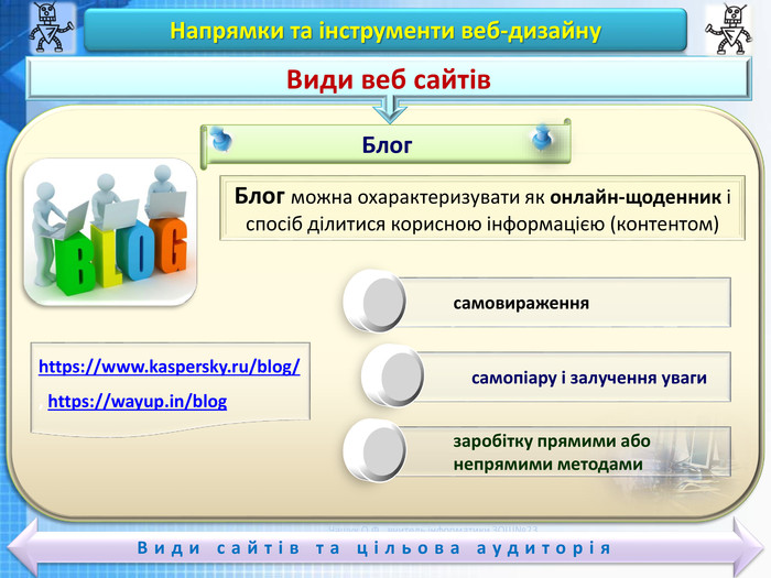 • Інформаційні ресурси: Блоги часто стають джерелом інформації для аудиторії, яка шукає новини або експертну оцінку.