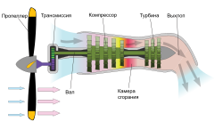- Редуктор — передавання обертань від турбіни до гвинта з відповідним зниженням швидкості.