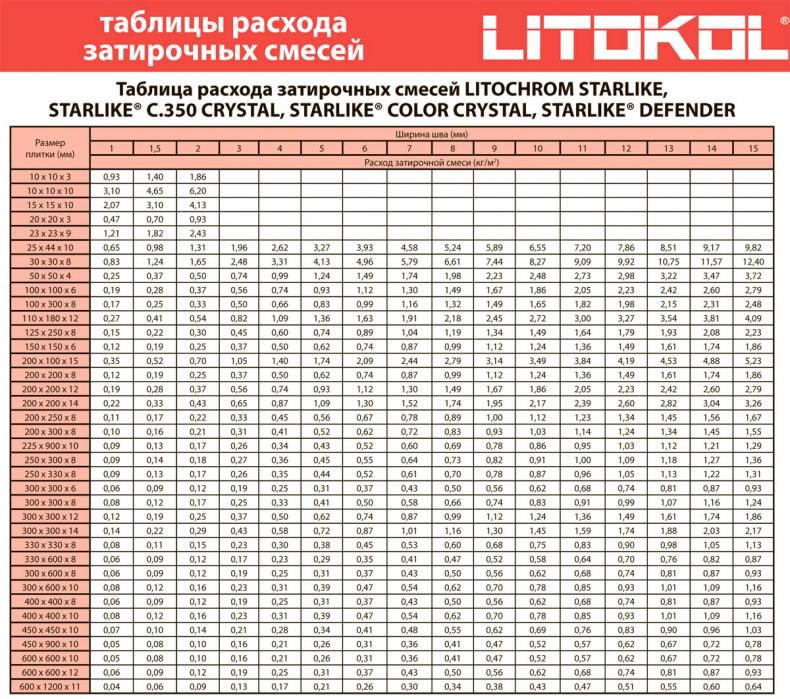 Отримаємо приблизну витрату 0,5 кг на м2, враховуючи коефіцієнт щільності фуги (питомий об’єм = 1,6 кг/дм3).