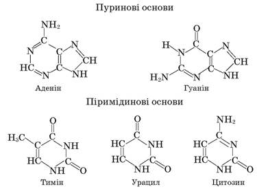 | Пуринові основи | Піримідинові основи |