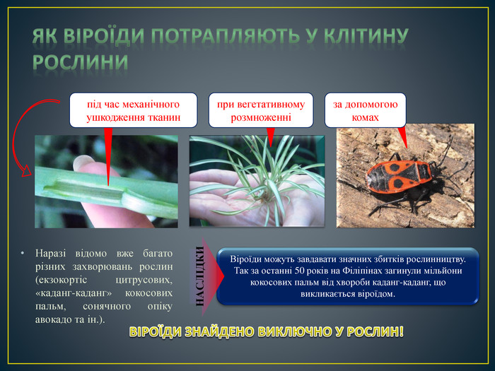 - Відтоді було відкрито понад 30 різних віроїдів, які можуть вражати різні види рослин.