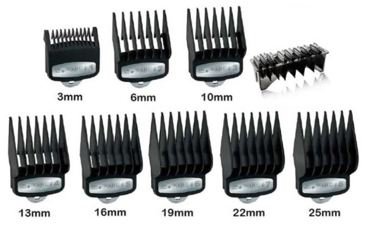 Ці насадки призначені для створення різної довжини волосся. Більшість стандартних насадок доповнені набором гребінців із різною відстанню між зубами, що допомагає створювати плавні переходи між довжиною волосся.